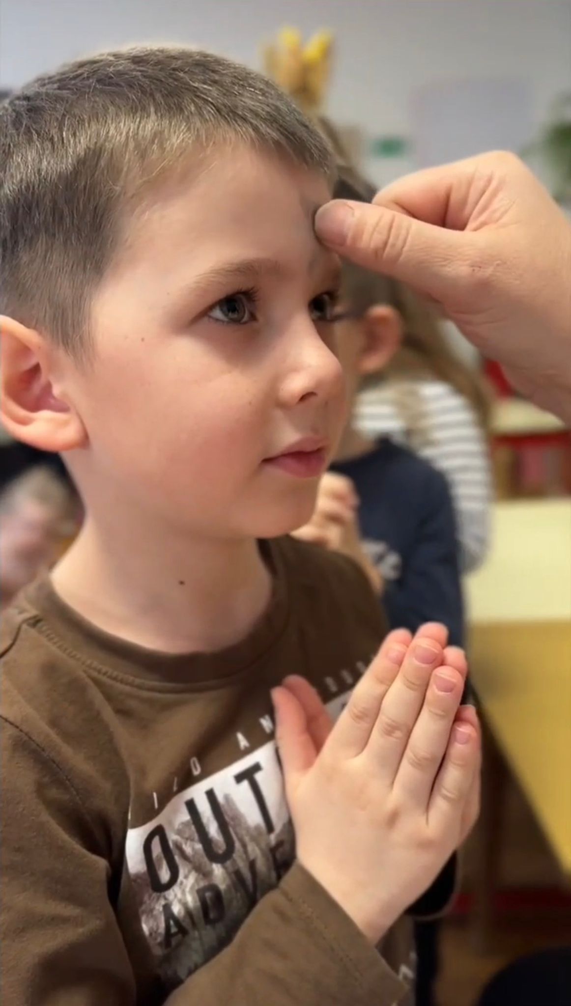 S djecom smo razgovarali o značenju ovog dana, promatrali suhe maslinove grančice i učili o simbolici pepela. U mirnom i svečanom ozračju svakom smo djetetu stavili mali križić od pepela na čelo — trenutak koji je bio tih, ali vrlo poseban i pun osjećaja.